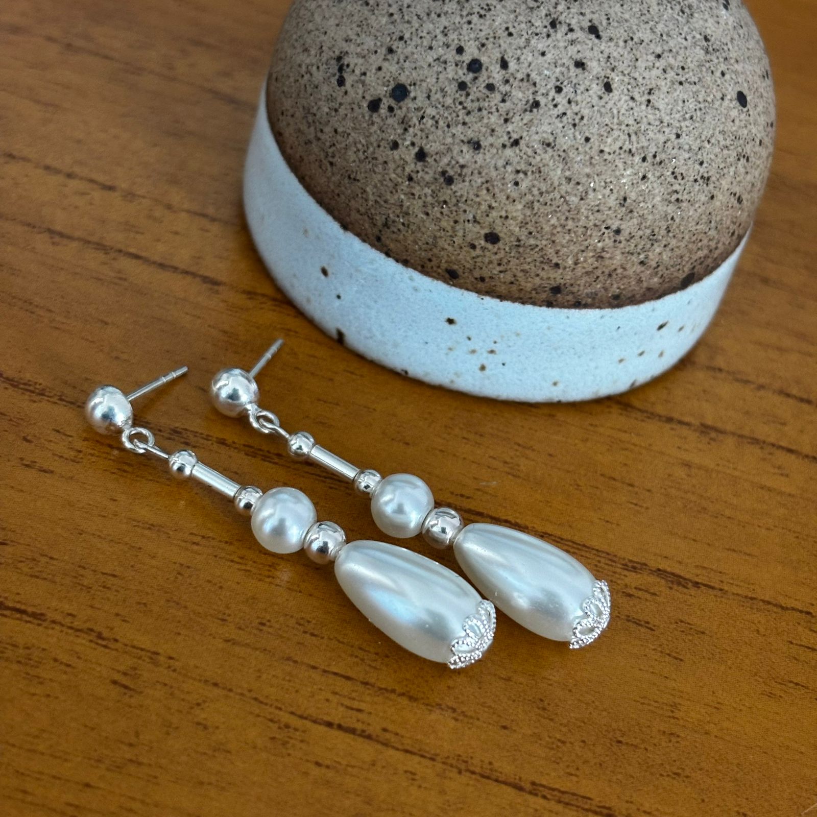 Brinco Elegante Noivas, Pérola e Prata 925.