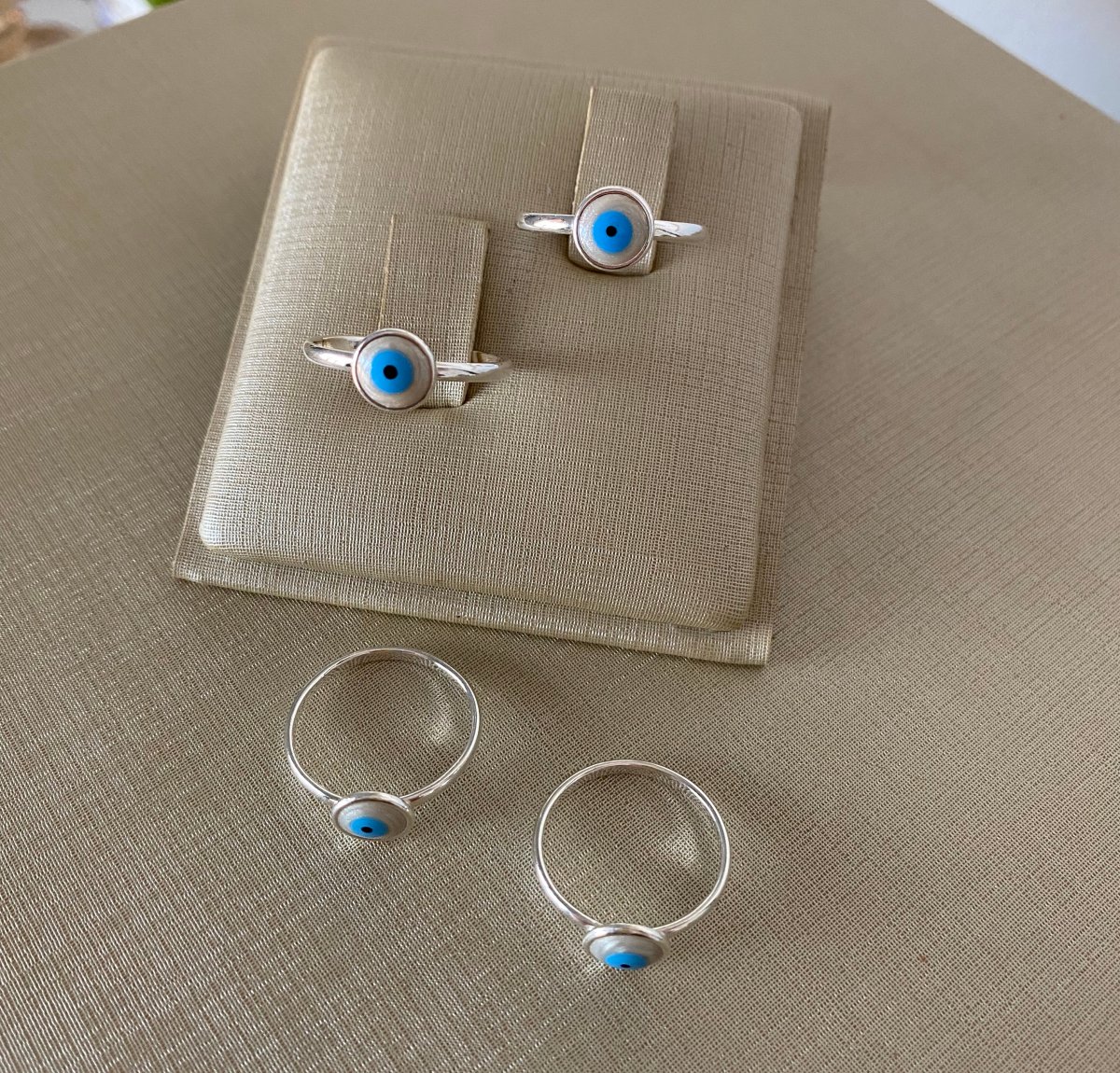 Anel Olho Grego e Mão de Fátima material Prata, Medida 18.