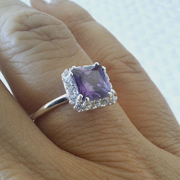 Anel cristal zircônia ametista de 9 mm, em Prata 925 . Medida 19.