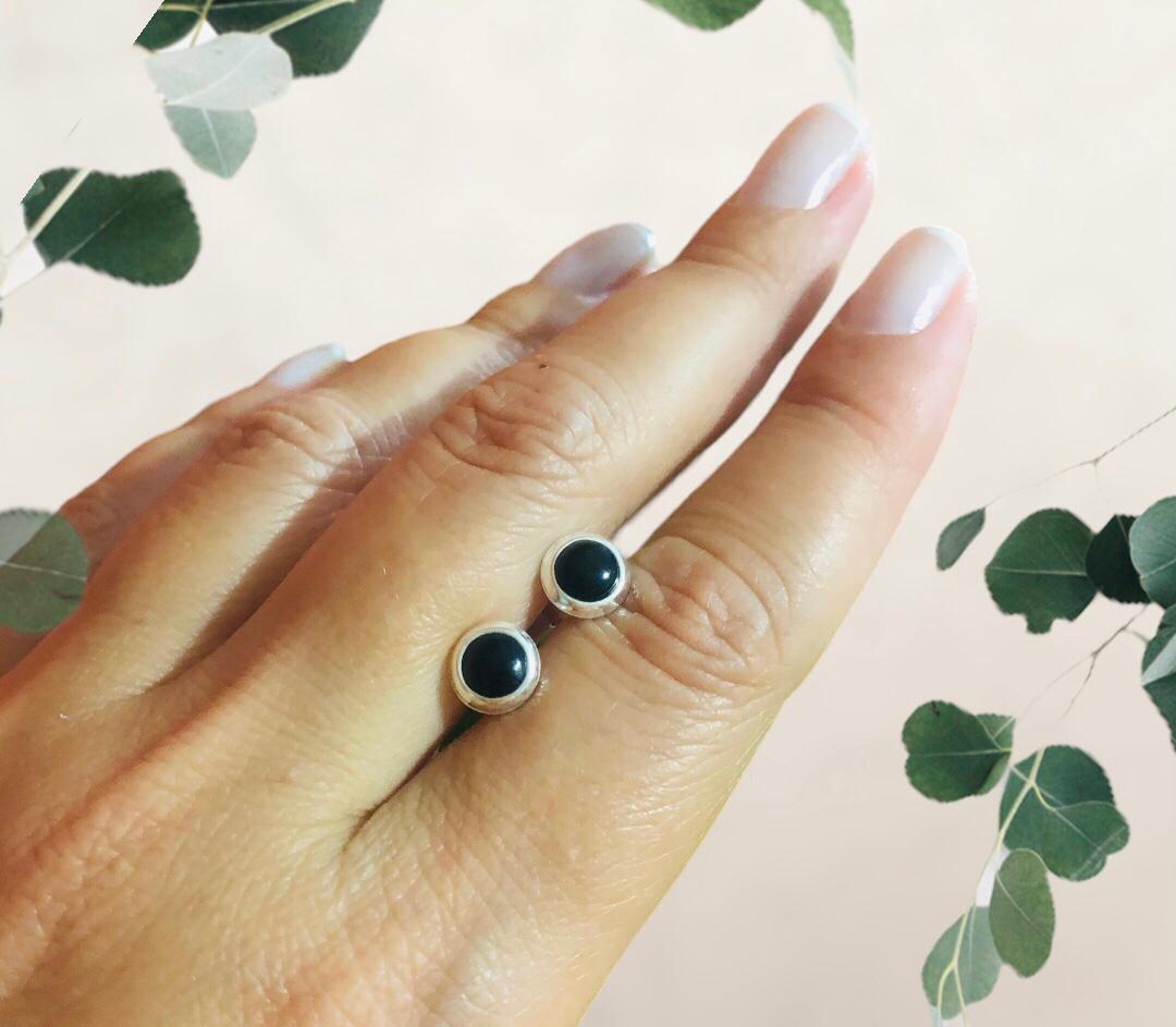 Brinco Redondo Pedra Preta Pequeno Prata 925.
