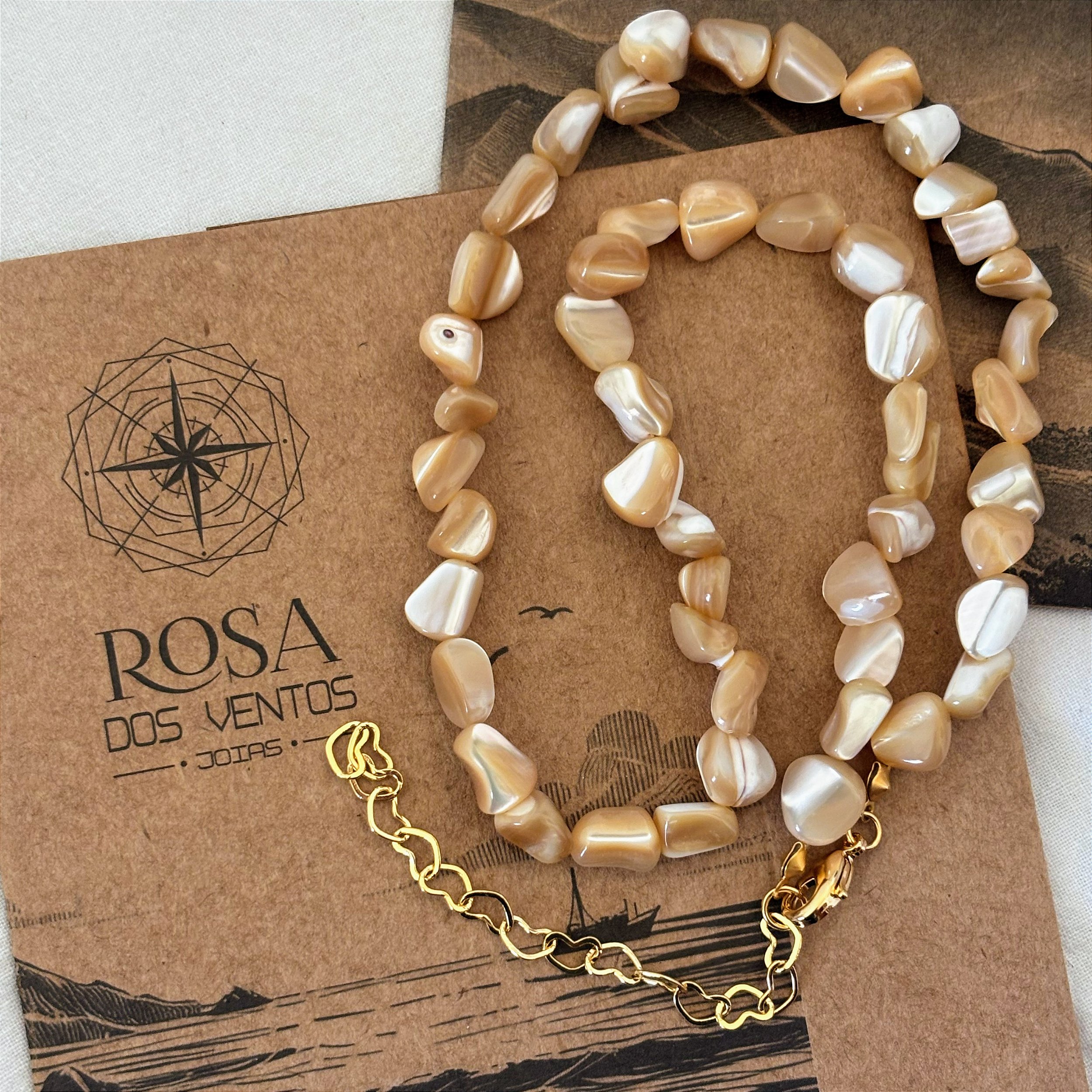 Colar Madreperola Perola Doce de Leite Irregular com fecho banhado a ouro amarelo
