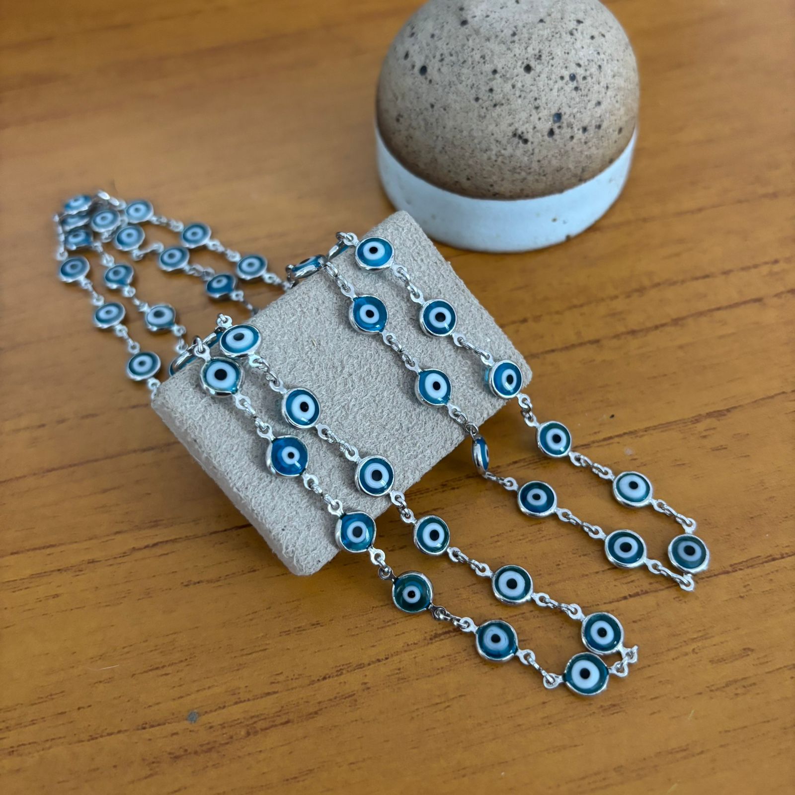 Corrente Olho Grego banho de ródio branco com 60 cm