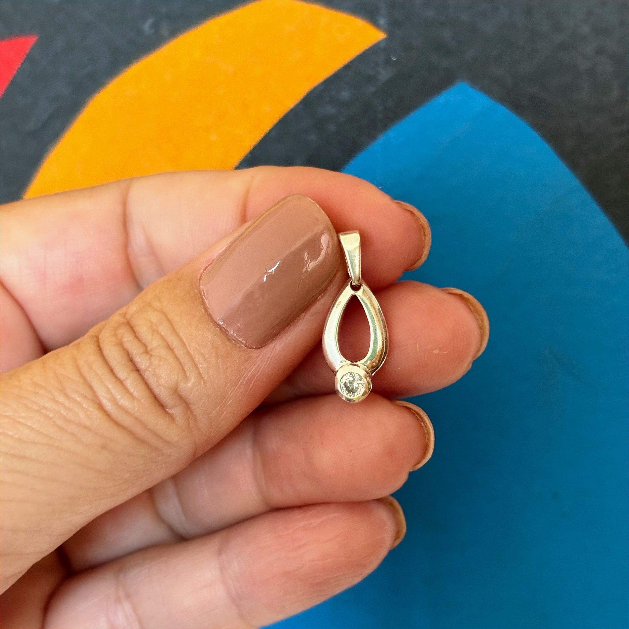Pingente Gota Ponto de Luz prata com corrente veneziana.
