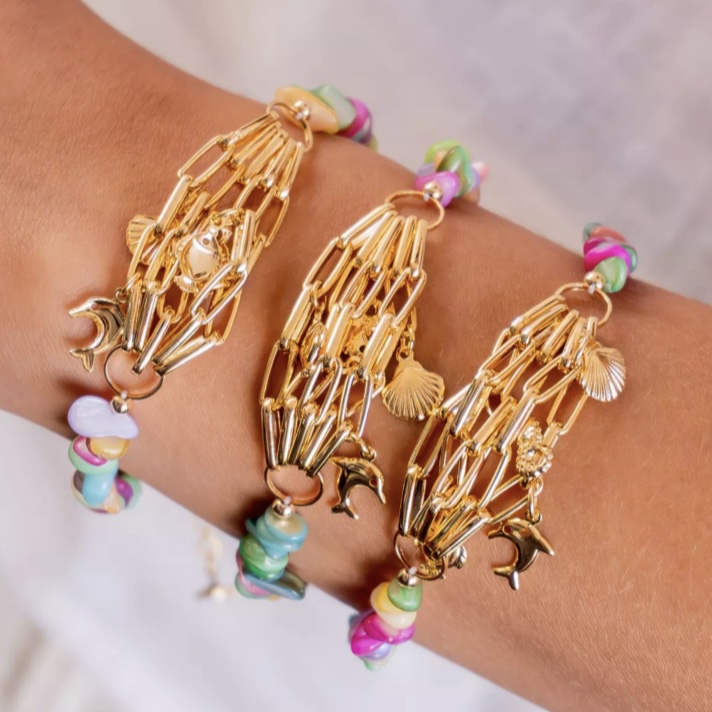 Pulseira Cascalho Colorido com Pingentes Fundo do