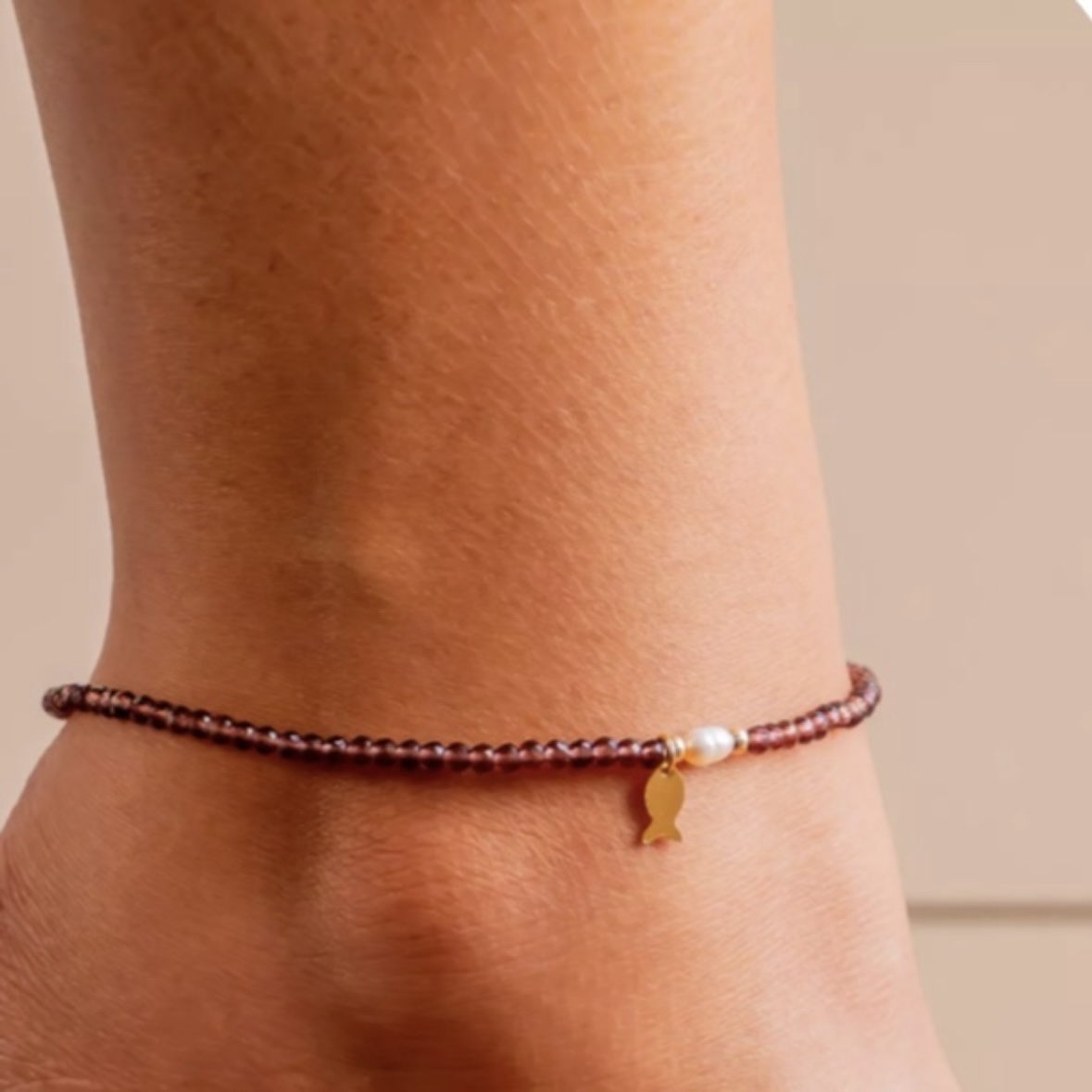 Tornozeleira Cristais Vinho com Pérola de Água Doce